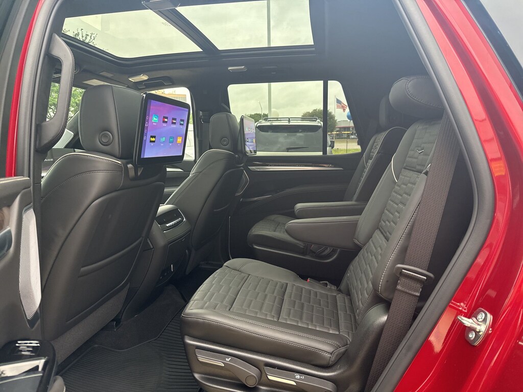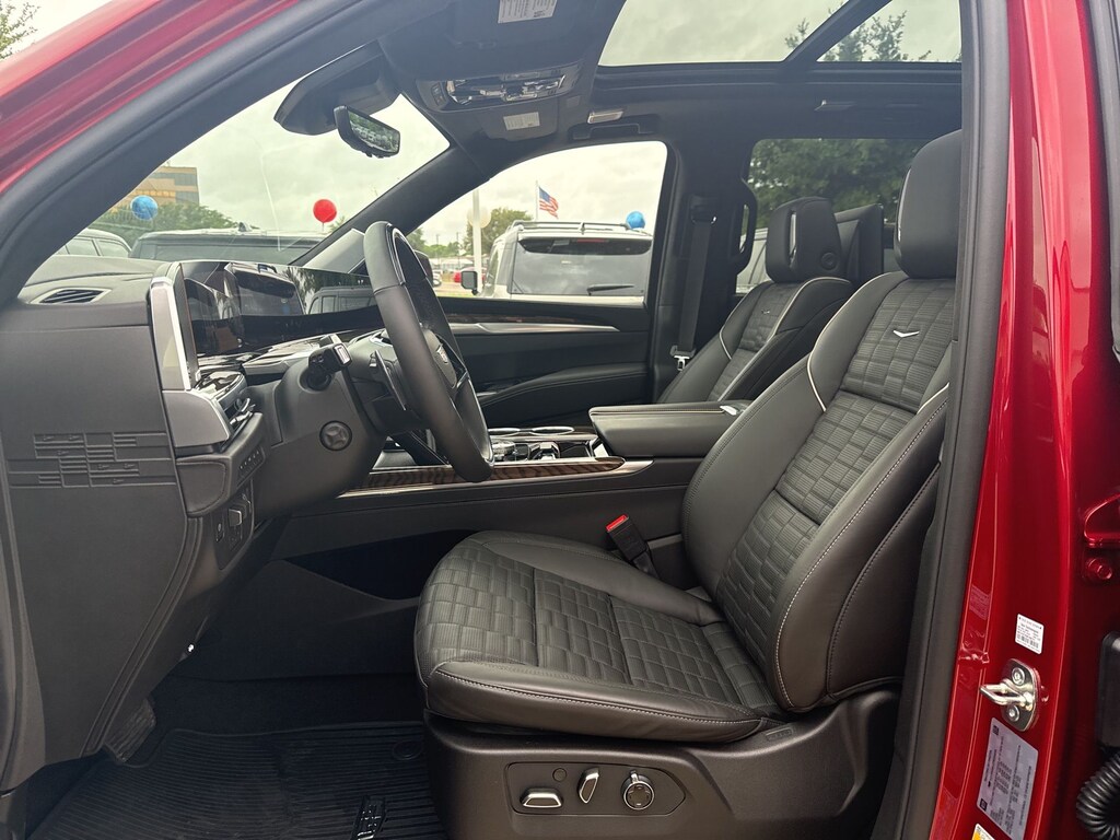 4WD, Black Leather, 1st 2nd and 3rd Row All-Weather Floor Mats, 2-Speed Active Transfer Case, 24" Black Alloy Wheels, 3rd Row All-Weather Floor Liner Package, Active Noise Cancellation, Air Ride Adaptive Suspension, AKG Studio Reference 38-Speaker Audio System, Black Illuminated Cadillac Emblem, Blind Zone Steering Assist with Trailering, Door Lock and Latch Shields, Driver Seat Power Bolster, Electronic Limited-Slip Differential, Front Passenger Seat Power Bolster, Glass Breakage Sensor, Gloss Black Escalade Nameplate, Heated and Ventilated Driver and Front Passenger Seats, Hitch Guidance with Hitch View, Illuminating Front and Rear Sill Plates, Integrated Cargo Liner, Integrated Trailer Brake Controller, Interior Protection Package, Magnetic Ride Control Suspension, Night Vision, Onyx Package, Platinum Interior Trim, Power Lumbar Massage Driver Seat, Power Lumbar Massage Front Passenger Seat, Power Open/Close Doors, Power Panoramic Tilt-Sliding Sunroof, Power-Retractable Assist Steps, Preferred Equipment Group 1SH, Rear Seat Entertainment System, Reconfigurable Full-Color Head-Up Display, Smart Trailer Integration Indicator, Soft Closing Front and Rear Doors, Theft-Deterrent Alarm System, Touring Package, Trailering App, Trailering Assist Guidelines, Vehicle Inclination Sensor, Vehicle Interior Movement Sensor, Wheel Locks, Wheels: 22" 18-Spoke Alloy, Wheels: 24" Transit.