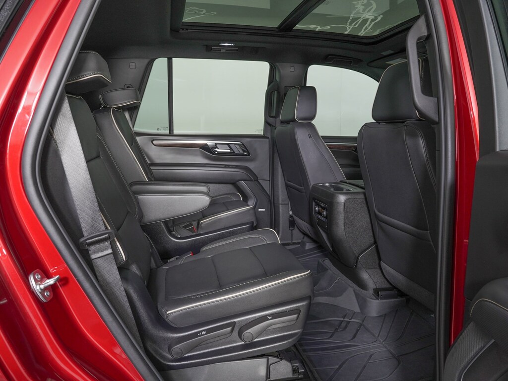 4WD, Black Leather, 10 Speakers, 1st and 2nd Row Color-Keyed Carpeted Floor Mats, 2-Speed Active Electronic AutoTrac Transfer Case, 3-Spoke Wrapped Steering Wheel, 3rd Row 60/40 Power-Folding Split-Bench Seat, 3rd Row All-Weather Floor Liners, 4-Way Power Driver Lumbar Seat Adjuster, 4-Way Power Front Passenger Lumbar Seat Adjuster, 8-Way Power Driver Seat Adjuster, 8-Way Power Front Passenger Seat Adjuster, Adaptive suspension, Advanced Trailering Package, AM/FM radio: SiriusXM with 360L, Apple CarPlay/Android Auto, Auto High-beam Headlights, Auto-Dimming Inside Rear-View Mirror, Auto-leveling suspension, Blind Zone Steering Assist with Trailering, Bose 10-Speaker Centerpoint Surround Audio System Feature, Bright Front and Rear Door Sill Plates, Chrome Door Handles with Body-Color Strip, Chrome Mirror Caps, Color-Keyed Carpeting Floor Covering, Dual Exhaust System, Dual-Pane Power Panoramic Sunroof, Electronic Stability Control, Exterior Parking Camera Rear, Floor Console, Four wheel independent suspension, Front Bucket Seats, Front LED Fog Lamps, Front Pedestrian and Bicyclist Braking, Frontal Driver and Outboard Passenger Airbags, Heated 2nd Row Outboard Seats, Heated Driver and Front Passenger Seats, Heated Steering Wheel, Hill Descent Control, Hitch View with Pan/Zoom Image Adjustment, Integrated Trailer Brake Controller, LED Headlamps with LED Daytime Running Lamps, LED Tail Lamps, Magnetic Ride Control Suspension, Max Trailering Package, Memory Settings, Navigation system: Google built-in compatibility (select service plan required, terms and limitations apply), Outside Heated Power-Adjustable Mirrors, Perforated Leather Seat Trim, Power passenger seat, Power Release 2nd Row Bucket Seats, Power Tilt and Telescopic Steering Column, Preferred Equipment Group 1LZ, Premium audio system: Chevrolet Infotainment 3 Premium, Radio data system, Radio: 17.7" Diagonal Advanced Color LCD Display, Rain sensing wipers, Rear Power Liftgate, Remote Start, SiriusXM with 360L Trial Subscription, Smart Trailer Integration Indicator, Split folding rear seat, Sun and Tow Package, Universal Home Remote, Ventilated front seats, Wireless Phone Charging.