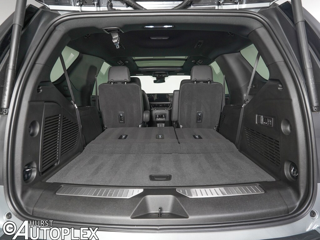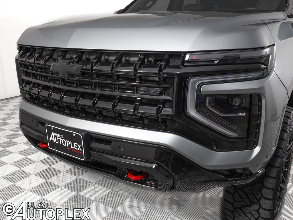 4WD, Jet Black Leather, 1st and 2nd Row Color-Keyed Carpeted Floor Mats, 2-Speed Active Electronic AutoTrac Transfer Case, 2nd Row Power Release 60/40 Split-Folding Bench Seat, 3-Spoke Wrapped Steering Wheel, 3rd Row 60/40 Power-Folding Split-Bench Seat, 3rd Row Manual 60/40 Split-Folding Bench Seats, 6-Speaker Audio System Feature, 8-Way Power Driver Seat Adjuster, 8-Way Power Front Passenger Seat Adjuster, Advanced Trailering Package, AM/FM radio: SiriusXM with 360L, Apple CarPlay/Android Auto, Auto High-beam Headlights, Auto-Dimming Inside Rear-View Mirror, Black Tubular Assist Steps, Blind Zone Steering Assist with Trailering, Bose 10-Speaker Centerpoint Surround Audio System Feature, Bright Front and Rear Door Sill Plates, Color-Keyed Carpeting Floor Covering, Comfort Package, Dual Exhaust System, Dual-Pane Power Panoramic Sunroof, Exterior Parking Camera Rear, Floor Console with Storage Area, Four wheel independent suspension, Front Bucket Seats, Front High-Approach Angle Fascia, Front LED Fog Lamps, Frontal Driver and Outboard Passenger Airbags, Heated 2nd Row Outboard Seats, Heated Driver and Front Passenger Seats, Heated Steering Wheel, Hill Descent Control, Hitch View with Pan/Zoom Image Adjustment, Integrated Trailer Brake Controller, Interior Camera, Key Card, Leather-Appointed Seat Trim, LED Headlamps with LED Daytime Running Lamps, LED Tail Lamps, Max Trailering Package, Memory Settings, Memory Settings For Driver, Navigation system: Google built-in compatibility (select service plan required, terms and limitations apply), Outside Heated Power-Adjustable Mirrors, Power Release 2nd Row Bucket Seats, Preferred Equipment Group 2Z7, Premium audio system: Chevrolet Infotainment 3 Premium, Premium Smooth Ride Suspension, Radio data system, Radio: 17.7" Diagonal Advanced Color LCD Display, Rain sensing wipers, Rear Power Liftgate, Red Horizontal-Mounted Recovery Hooks, Remote Start, SiriusXM with 360L Trial Subscription, Smart Trailer Integration Indicator, Universal Home Remote, USB Ports, Wireless Phone Charging, Z71 Exterior Features.