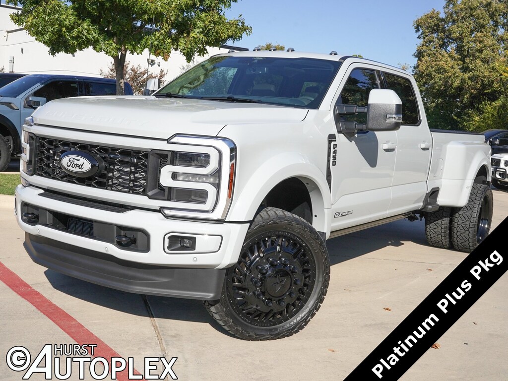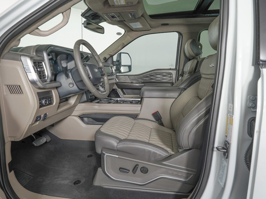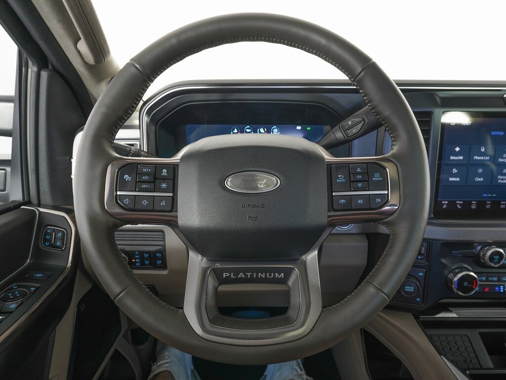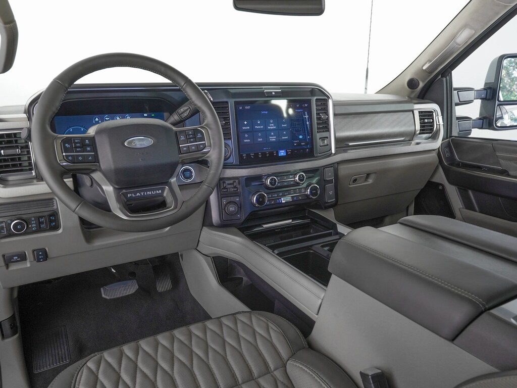 4WD, 360-Degree Camera, Adjustable pedals, All-Weather Floor Mats, AM/FM radio: SiriusXM with 360L, Auto High-beam Headlights, Auto-dimming Rear-View mirror, Delay-off headlights, Driver door bin, Driver vanity mirror, Dual rear wheels, Electronic Stability Control, Exterior Parking Camera Rear, Flow-Through Console, Front Bucket Seats, Front Center Armrest, GVWR: 14,000 lb Payload Package, Heated front seats, Heated rear seats, Heated steering wheel, Illuminated Scuff Plates, Limited Slip w/4.30 Axle Ratio, Navigation System, Order Code 773A, Platinum Plus Package, Power passenger seat, Premium Leather IP Topper, Premium Luxury Leather-Wrapped Steering Wheel, Premium Venetian Leather Door Panel, Pro Power Onboard - 2kW, Radio: B&O Unleashed Sound System by Bang & Olufsen, Rain sensing wipers, Satin Chrome Door Handles, SiriusXM Radio w/360L, Speed control, Split folding rear seat, SYNC 4 w/Enhanced Voice Recognition, Twin Panel Power Moonroof, Unique Platinum Plus Luxury Lthr 40/Console/40 Seats, Unique Satin Finish Grille, Unique Split Center Console Armrest, Upfitter Switches (6), Variably intermittent wipers, Ventilated front seats. DRW