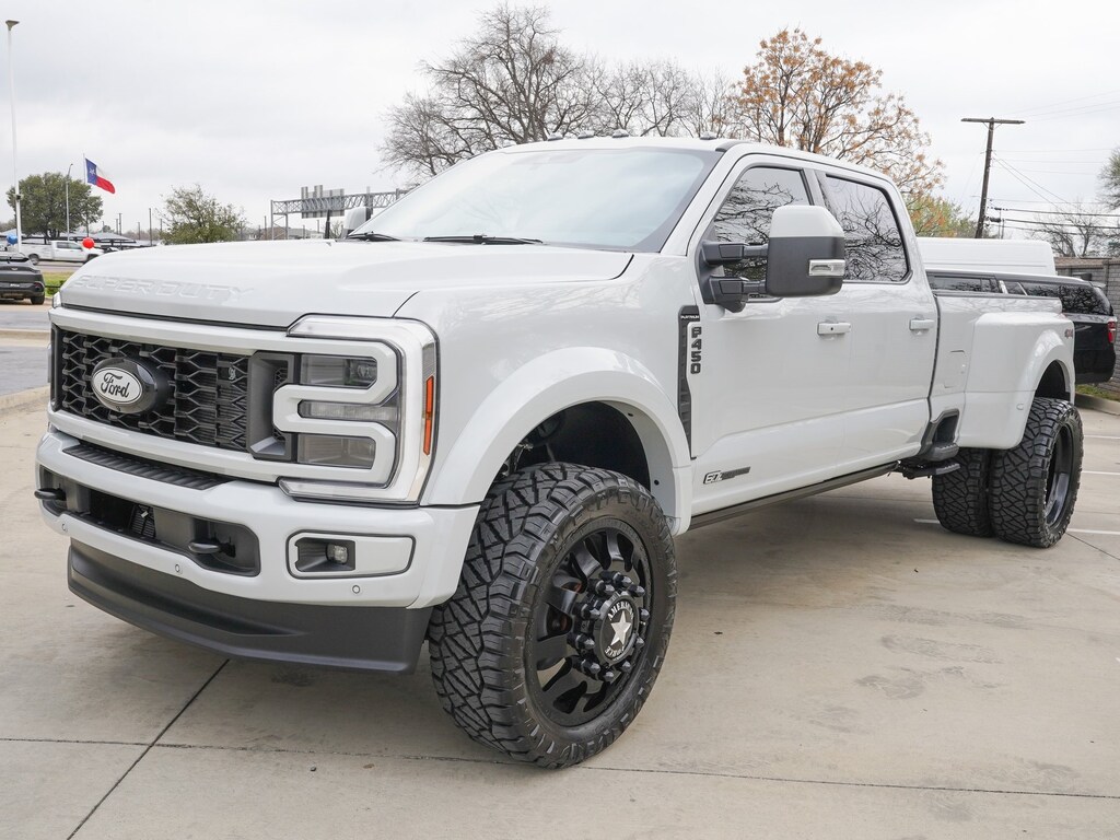 4WD, 250 Amp Alternator, Adjustable pedals, All-Weather Floor Mats, AM/FM radio: SiriusXM with 360L, Auto High-beam Headlights, Dual rear wheels, Electronic Stability Control, Engine Block Heater, Exterior Parking Camera Rear, Flow-Through Console, Front Bucket Seats, Front Center Armrest, Front reading lights, Garage door transmitter, Gooseneck Dual Hitch Kit, GVWR: 14,000 Lb Payload Package, Heated front seats, Heated rear seats, Heated steering wheel, Illuminated Scuff Plates, Internet access capable: FordPass Connect 5G, Limited Slip with 4.30 Axle Ratio, Navigation System, Order Code 773A, Platinum Plus Package, Power passenger seat, Premium Leather Instrument Panel Topper, Premium Luxury Leather-Wrapped Steering Wheel, Premium Venetian Leather Door Panel, Pro Power Onboard - 2kW, Radio: B&O Unleashed Sound System by Bang & Olufsen, Rain sensing wipers, Satin Chrome Door Handles, SiriusXM Radio with 360L, Snow Plow Prep Package, Split folding rear seat, SYNC 4 with Enhanced Voice Recognition, Twin Panel Power Moonroof, Unique Platinum Leather 40/Console/40 Seats, Unique Platinum Plus Luxury Leather 40/Console/40 Seats, Unique Satin Finish Grille, Unique Split Center Console Armrest, Upfitter Switches (6), Variably intermittent wipers, Ventilated front seats. DRW