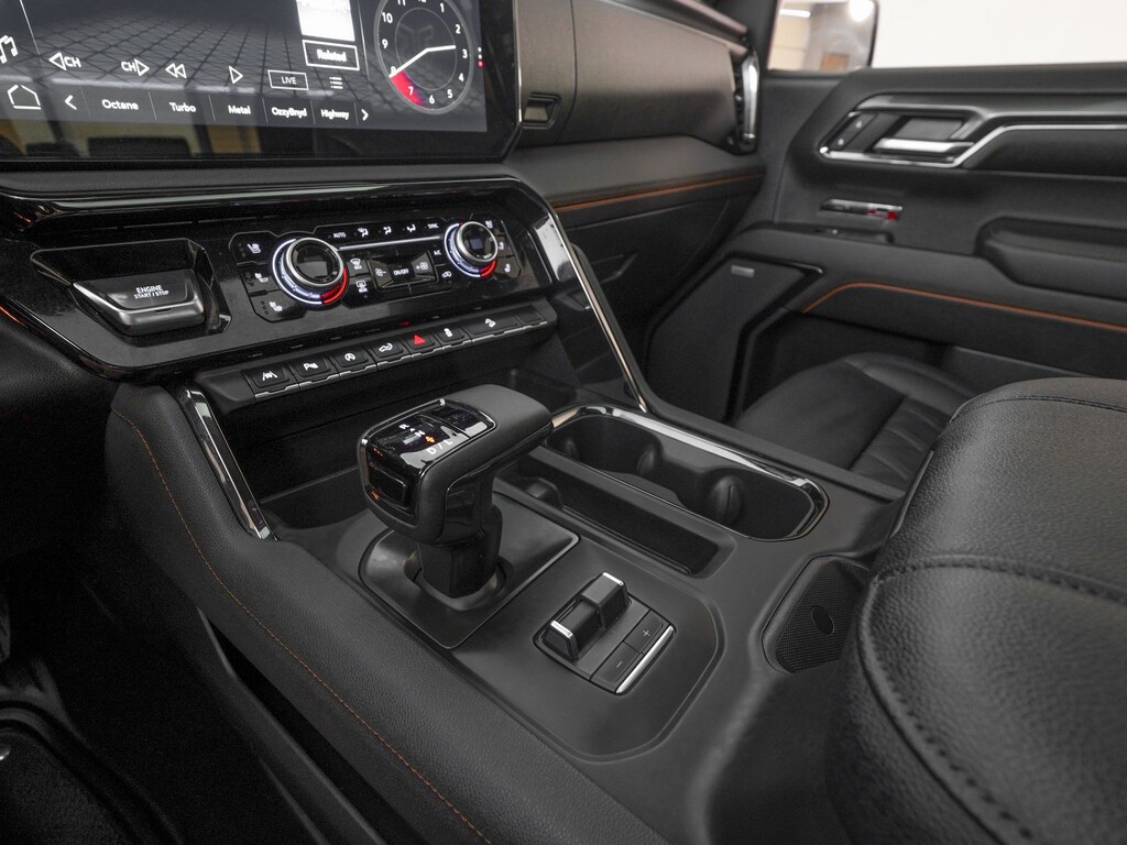 10-Speed Automatic, 4WD, Jet Black Leather, 120-Volt Bed Mounted Power Outlet, 120-Volt Interior Power Outlet, 2 Charge/Data USB Ports Inside Center Console, 2 Type-C Charge-Only Rear USB Ports, 2 USB Ports, 220 Amp Alternator, 7 Speakers, AM/FM radio: SiriusXM with 360L, Apple CarPlay/Android Auto, AT4 Preferred Package, AT4 Premium Package, Auto High-beam Headlights, Auto-dimming Rear-View mirror, Auto-Locking Rear Differential, Automatic Emergency Braking, Bed View Camera, Black Chrome Header & Grille Insert Bars, Color-Keyed Carpeting Floor Covering, Deep-Tinted Glass, Electric Rear-Window Defogger, Electronic Stability Control, Floor-Mounted Center Console, Front Prem Floor Liners w/Removable Carpet Insert, Front Rain-Sensing Wipers, GMC Connected Access Capable, HD Surround Vision, Heated 2nd Row Outboard Seats, Heated Driver & Front Outboard Passenger Seating, Heated steering wheel, Heavy-Duty Air Filter, Hill Descent Control, Hitch Guidance, Hitch View, In-Vehicle Trailering System App, Integrated Trailer Brake Controller, Keyless Open & Start, Lane Keep Assist w/Lane Departure Warning, LED Cargo Area Lighting, Multicolor 15" Diagonal Head-Up Display, Navigation System, Off-Road High Clearance Step (LPO), OnStar & GMC Connected Services Capable, Perimeter Lighting, Power Door Locks, Power Front Passenger Windows w/Express Up/Down, Power Front Windows w/Driver Express Up/Down, Power passenger seat, Power Rake & Telescoping Steering Column, Power Rear Windows w/Express Down, Power Sliding Rear Window w/Rear Defogger, Power Sunroof, Preferred Equipment Group 4SB, Premium audio system: GMC Infotainment System, Premium Bose 7-Speaker Sound System, Push Button Start, Radio data system, Radio: Premium GMC Infotainment Audio System, Rain sensing wipers, Rear Camera Mirror, Rear Cross Traffic Braking, Rear Pedestrian Detection, Rear Prem Floor Liners w/Removable Carpet Insert, Rear Wheelhouse Liners, Red Recovery Hooks, Remote Vehicle Starter System, SiriusXM w/360L, Spray-On Pickup Bedliner w/AT4 Logo, Steering Wheel Audio Controls, Technology Package, Theft Deterrent System (Unauthorized Entry), Trailer Camera Provisions, Trailer Side Blind Zone Alert, Trailering Package, Ultrasonic Front & Rear Park Assist, Universal Home Remote, Ventilated Driver & Front Passenger Seats, Wi-Fi Hotspot Capable, Wireless Apple CarPlay/Wireless Android Auto, Wireless Charging. Rocky Ridge