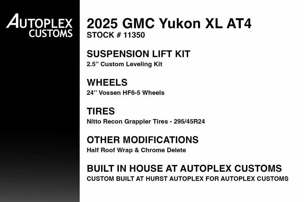 4WD, 15" Diagonal Multi-Color Head-Up Display, 18 Speakers, 1st & 2nd Rows All-Weather Floor Liners (LPO), 3 Years of OnStar Digital Services/Safety Services, 3 Years SiriusXM, 4-Spoke Leather-Wrapped Steering Wheel, 4-Way Power Driver Lumbar Seat Adjuster, 4-Way Power Front Passenger Lumbar Seat Adjuster, 8" Diagonal Rear Touchscreen Climate Control, Adaptive suspension, Advanced Security Package, Advanced Technology Package, Air Ride Adaptive Suspension, AM/FM radio: SiriusXM with 360L, Apple CarPlay/Android Auto, Audio memory, Auto High-beam Headlights, Auto-leveling suspension, AutoSense Hands-Free Power Liftgate, Black Roof-Mounted Luggage Rack Side Rails, Blind Zone Steering Assist w/Trailering, Body-Color Door Handles, Bose 18-Speaker Surround w/CenterPoint, Bright Front & Rear Door Sill Plates, Driver 2-Way Power Upper Shoulder, Driver Attention Assist, Driver Power Massage Seat, Dual Exhaust System, Dual-Pane Panoramic Power Sunroof, Electronic Limited Slip Differential (eLSD), Electronic Stability Control, Exterior Parking Camera Rear, Extra Capacity Cooling System, Four wheel independent suspension, Front High-Approach Angle Fascia, Front Passenger 2-Way Power Upper Shoulder, Front Passenger Power Massage Seat, Glass Breakage Sensor, Headphones, Heads-Up Display, Heated Driver & Front Passenger Seats, Heated rear seats, Heated steering wheel, Heavy-Duty Air Filter, Hill Descent Control, Hitch View, Inside Rearview Auto-Dimming Rear Camera Mirror, Integrated Trailer Brake Controller, Magnetic Ride Control Suspension, Max Trailering Package, Navigation system: GMC Connected Navigation, Night Vision, Perforated Heated & Ventilated Dr & Frt Pass Seats, Power Liftgate, Power Release 2nd Row Bucket Seats, Power Tilt & Telescopic Steering Column, Power-Retractable Assist Steps, Preferred Equipment Group 4SG, Premium Capability Package w/Active Response 4WD, Radio: 16.8" Diagonal Premium GMC Infotainment Sys, Rain sensing wipers, Rear audio controls, Rear Seat Media System, Red Horizontal-Mounted Recovery Hooks, SiriusXM w/360L, Smart Trailer Integration Indicator, Sport Pedal Cover Kit (LPO), Super Cruise, Theft-Deterrent Alarm System, Vehicle Inclination Sensor, Vehicle Interior Movement Sensor, Ventilated front seats, Wheel Locks (Set of 4) (LPO).