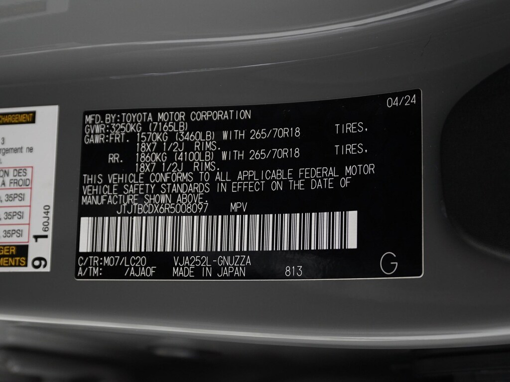 - Rear tires: 265/55HR20.0