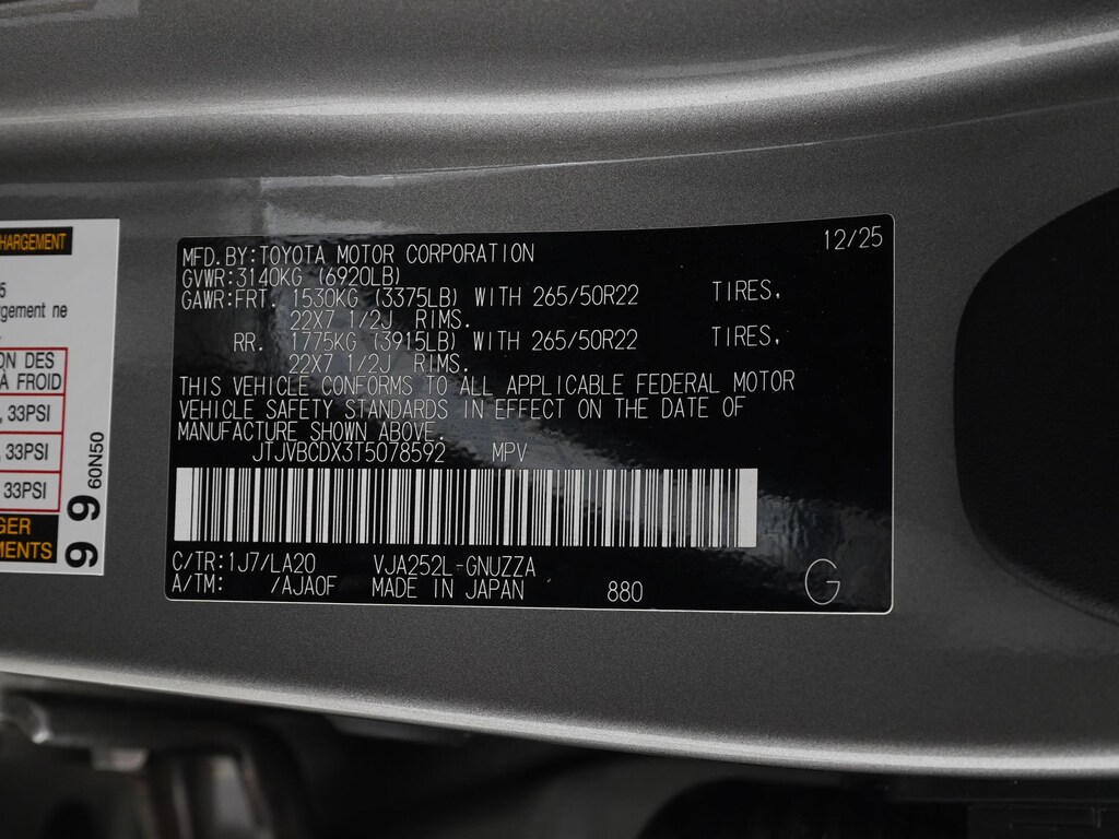 21 Speakers, 3rd row seats: split-bench, ABS brakes, Active Cruise Control, Adaptive suspension, Alloy wheels, AM/FM radio, Apple CarPlay/Android Auto, Auto High-beam Headlights, Auto tilt-away steering wheel, Cold Area Package, Electronic Stability Control, Exterior Parking Camera Rear, Fast-Response Interior Heater, Four wheel independent suspension, Front Bucket Seats, Front dual zone A/C, Headlamp Washer, Heated and Ventilated Front Seats, Heated door mirrors, Heated front seats, Heated rear seats, Illuminated entry, Lexus Interface with 14" Touchscreen Display, Low tire pressure warning, Luxury Plus Package, Memory seat, Navigation System, Power Liftgate, Power passenger seat, Radio: Mark Levinson Premium Surround Sound System, Rear window wiper, Remote keyless entry, Semi-Aniline Leather Seat Trim, Split folding rear seat, Traction control, Traffic Jam Assist, Windshield Wiper De-Icer.