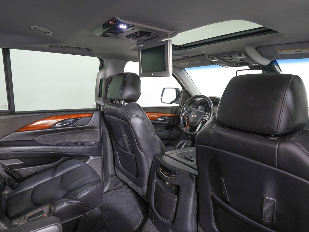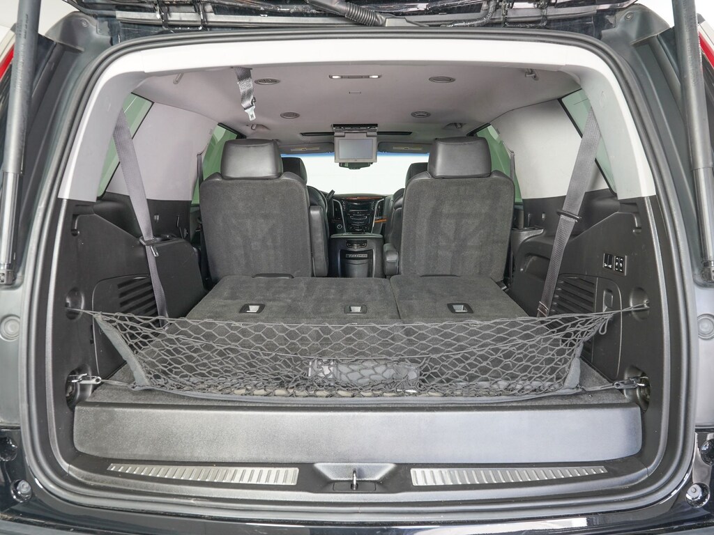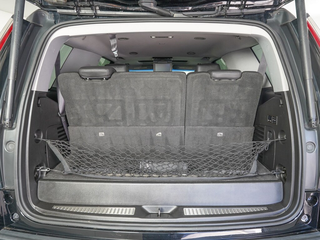 Jet Black Leather, 16 Speakers, 1st 2nd & 3rd Row Floor Mats (LPO), 22" x 9" 7-Spoke Ultra-Bright Aluminum Wheels, 3rd row seats: split-bench, A/V remote, Adaptive Full-Speed Range Cruise Control, Adaptive suspension, Adjustable pedals, Apple CarPlay, Auto High-beam Headlights, Auto-leveling suspension, Automatic Safety Belt Tightening, Bose Centerpoint Surround Sound System, CD player, Driver Assist Package, DVD-Audio, Electronic Powered Parking Brake, Electronic Stability Control, Exterior Parking Camera Rear, Forward Collision Alert, Front & Rear Automatic Braking, Front Bucket Seats, HD Radio, Headphones, Heated & Cooled Front Bucket Seats, Heated rear seats, Heated steering wheel, Illuminated Door Handles, IntelliBeam Headlamps, Lane Departure Warning System, Lane Keep Assist, Leather Seating Surfaces, Magnetic Ride Control Suspension, Navigation System, NavTraffic, Power Liftgate, Power Tilt-Sliding Sunroof w/Express-Open/Close, Power-Retractable Assist Steps, Preferred Equipment Group 1SC, Radio data system, Radio: Cadillac CUE Info/Media Ctrl Sys w/Embd Nav, Rain sensing wipers, Rear audio controls, Rear Cross-Traffic Alert, Rear Seat Entertainment System, Reconfigurable 4-Color Head-Up Display, Second Row Bucket Seats, Side Blind Zone Alert, SiriusXM Satellite Radio, Theft-Deterrent Alarm System, Theft-Deterrent Package, VAC Power 17" Disc Brakes, Vehicle Inclination Sensor, Vehicle Interior Movement Sensor.