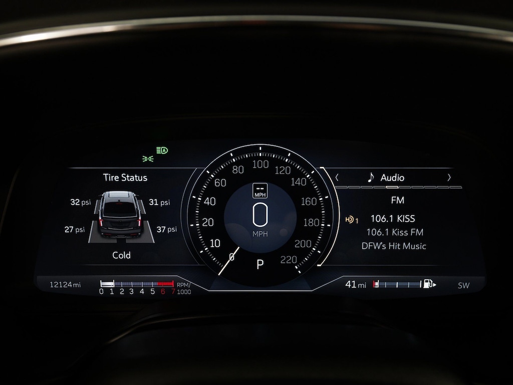 16 Speakers, 3 USB Ports, 3.73 Rear Axle Ratio, Adaptive Cruise Control, Adaptive Remote Start, Adaptive suspension, AKG Premium 16-Speaker System, AM/FM radio: SiriusXM with 360L, Apple CarPlay/Android Auto, Auto High-beam Headlights, Automatic Emergency Braking, Battery Protection Package (LPO), Brembo 4-Wheel Antilock Performance Disc Brakes, Driver 4-Way Power Lumbar Seat Adjuster, Driver Assist Package, Driver Power Lumbar Massage Seat, Electronic Cruise Control w/Set & Resume Speed, Electronic Stability Control, Enhanced Automatic Emergency Braking, Exterior Parking Camera Rear, Four wheel independent suspension, Front & Rear Park Assist, Front 2-Way Adjustable Head Restraints, Front Passenger 4-Way Power Lumbar Seat Adjuster, Front Passenger Power Lumbar Massage Seat, HD Radio, Heads-Up Display, Heated Driver & Front Passenger Seats, Heated steering wheel, High Performance Front Bucket Seats, Inside Rear-View Auto-Dimming Mirror, Lane Keep Assist w/Lane Departure Warning, Leather Seating Surfaces w/Mini-Perforated Inserts, Leather-Wrapped Thick Rim Steering Wheel, Navigation System, Power passenger seat, Preferred Equipment Group 1SV, Radio data system, Radio: Cadillac User Experience w/Embedded Nav, Rain sensing wipers, Reverse Automatic Braking, SiriusXM w/360L, Split folding rear seat, Sueded Microfiber Shifter, Sueded Microfiber Steering Wheel, Sueded Microfiber-Wrapped Interior Trim Package, Teen Driver, Torch Red Seat Belt Color, UltraView Dual Pane Sunroof, Ventilated Driver & Front Passenger Seats, Wheels: 19" Alum Alloy w/Satin Graphite Dk Finish.