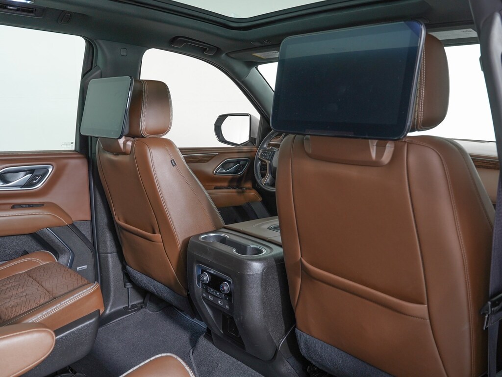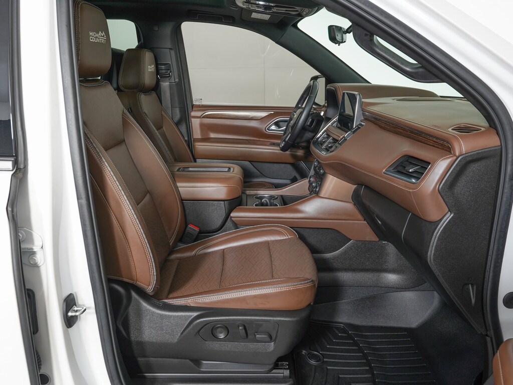 Jet Black/Mocha Leather, 10 Speakers, 12-Way Power Driver & Passenger Seat Adjusters, 15" Diagonal Multi-Color Head-Up Display, 1st & 2nd Row Color-Keyed Carpeted Floor Mats, 2 USB Data Ports, 3rd Row 60/40 Power-Folding Split-Bench Seat, Adaptive Cruise Control, Adaptive suspension, Advanced Trailering Package, Air Ride Adaptive Suspension, AM/FM radio: SiriusXM with 360L, Apple CarPlay/Android Auto, Auto High-beam Headlights, Auto-leveling suspension, Automatic Heated Steering Wheel, Bose 10-Speaker Centerpoint Surround Audio Sys Ft, Dual-Pane Power Panoramic Sunroof, Enhanced Automatic Emergency Braking, Enhanced Driver Information Center, Floor Console w/Storage Area, Four wheel independent suspension, Front & Rear Park Assist, Front Bucket Seats, Front Center Armrest, Front High-Back Reclining Bucket Seats, Hands-Free Rear Power Programmable Liftgate, HD Radio, HD Surround Vision, Heads-Up Display, Heated & Ventilated Driver & Front Passenger Seats, Heated Driver & Front Passenger Seats, Heated front seats, Heated steering wheel, High Country Deluxe, Inside Rearview Auto-Dimming Rear Camera Mirror, Lane Change Alert w/Side Blind Zone Alert, Lane Keep Assist w/Lane Departure Warning, Leather steering wheel, LED Daytime Running Lamps, License Plate Front Mounting Package, Magnetic Ride Control Suspension, Max Trailering Package, Navigation System, Power Liftgate, Power-Retractable Assist Steps, Preferred Equipment Group 3LZ, Premium audio system: Chevrolet Infotainment 3, Radio: Chevrolet Infotainment 3 Premium System, Rain sensing wipers, Rear Seat Media System, Set of 4 Wheel Locks (LPO), SiriusXM Radio w/360L, Ventilated front seats, Wheels: 22" x 9" Sterling Silver Premium Painted.