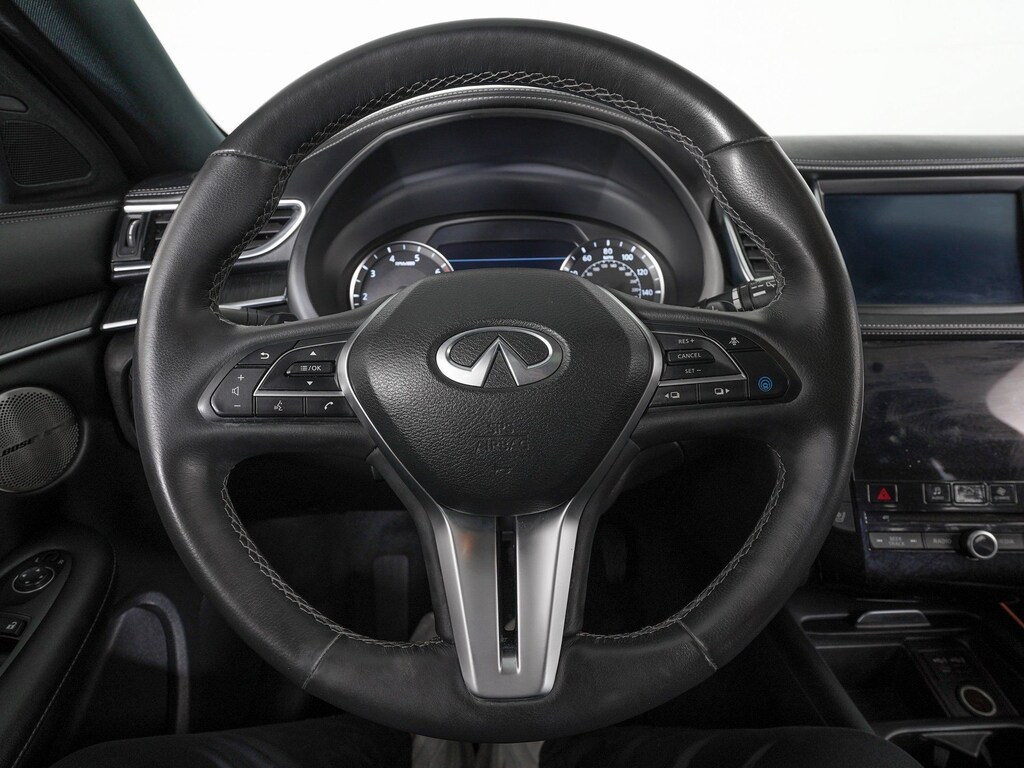 16 Speakers, AM/FM radio: SiriusXM, Auto High-beam Headlights, Auto tilt-away steering wheel, Auto-dimming Rear-View mirror, CD player, Climate Controlled Front Bucket Seats, Delay-off headlights, Electronic Stability Control, Four wheel independent suspension, Front Bucket Seats, Front Center Armrest, Heads-Up Display, Heated front seats, Heated steering wheel, Lighting Package, Navigation system: INFINITI InTouch Navigation, Power Liftgate, Power moonroof, Power passenger seat, Radio data system, Radio: Bose Performance Series Premium Audio, Rain sensing wipers, Rear window wiper, Semi-Aniline Leather-Appointed Seat Trim, Speed-sensing steering, Split folding rear seat, Turn signal indicator mirrors, Ventilated front seats, Welcome Lighting, Wheels: 20" x 8.5" Machine Finish Aluminum Alloy.