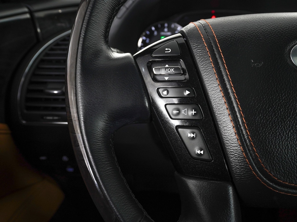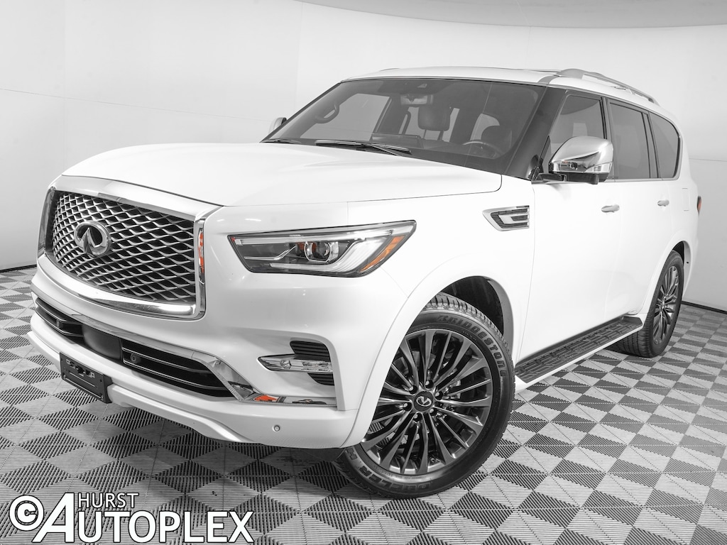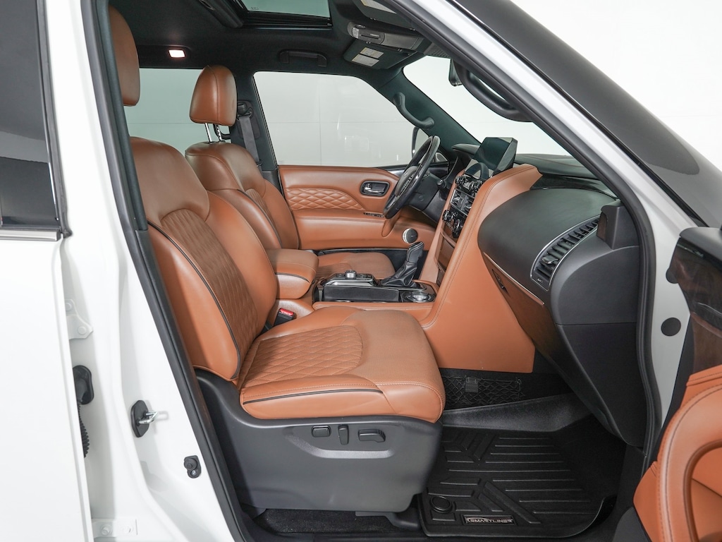 17 Speakers, 3rd row seats: bench, AM/FM radio: SiriusXM, Apple CarPlay/Android Auto, Auto High-beam Headlights, Auto tilt-away steering wheel, Auto-leveling suspension, Cargo Package, Climate Controlled Front Bucket Seats, Delay-off headlights, Driver vanity mirror, Four wheel independent suspension, Front Bucket Seats, Front Center Armrest, Front fog lights, Front reading lights, Fully automatic headlights, Heated door mirrors, Heated front seats, Heated rear seats, Heated steering wheel, Illuminated entry, Leather Shift Knob, Leather steering wheel, Navigation system: INFINITI InTouch Navigation, Nylon-Cord Cargo Net, Passenger door bin, Perforated Semi-Aniline Leather-Appointed Seats, Power door mirrors, Power Liftgate, Power moonroof, Power passenger seat, Radio data system, Radio: Bose Performance Audio System w/17 Speakers, Rain sensing wipers, Reclining 3rd row seat, Roof Rail Cross Bars, Speed-sensing steering, Split folding rear seat, Tilt steering wheel, Trip computer, Ventilated front seats, Wheels: 22" Dark Chrome Cast Aluminum-Alloy.