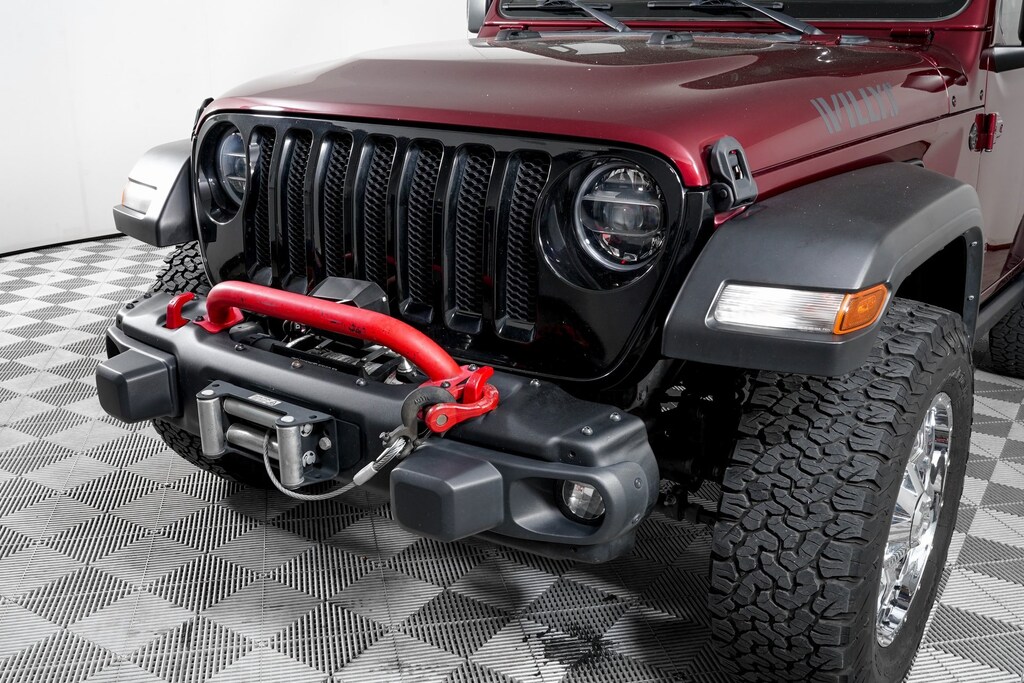 110 mph Vehicle Max Speed Calibration, 4-Wheel Drive Swing Gate Decal, 7.0" Touchscreen Display, 8 Speakers, 97 MPH Vehicle Max Speed Calibration, AM/FM radio, Apple CarPlay, Black Grille, Black Trail Rated Badge, Blind Spot & Cross Path Detection, Cloth Low-Back Bucket Seats, Deep Tint Sunscreen Windows, Electronic Stability Control, For More Info Call 800-643-2112, Front 1-Touch Down Power Windows, Front Bucket Seats, Front LED Fog Lamps, GPS Antenna Input, Injection Molded Black Rear Bumper, Integrated Center Stack Radio, Leather Wrapped Steering Wheel, LED Headlamp & Fog Lamp Group, LED Premium Reflector Headlamps, LED Taillamps, Matte Black Jeep Badge, Mold In Color Bumper w/Gloss Black, MOPAR All-Weather Floor Mats (DISC), Normal Duty Suspension, ParkSense Rear Park Assist System, ParkView Rear Back-Up Camera, Power steering, Quick Order Package 25W Willys, Radio data system, Radio: Uconnect 3 w/5" Display, Radio: Uconnect 4 w/7" Display, Safety Group, SiriusXM Radio Service, SiriusXM Satellite Radio, Soft Top Window Storage Bag, Sun Visors w/Illuminated Vanity Mirrors, Technology Group, Traction control, USB Host Flip, Variably intermittent wipers.