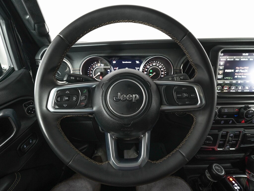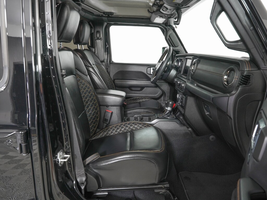 9 Speakers, AM/FM radio: SiriusXM, Apple CarPlay/Android Auto, Blind Spot & Cross Path Detection, Body Color 3-Piece Hard Top, Body Color Front Bumper, Body Color Grille w/Gloss Black Rings, Body-Color Door & Tailgate Handles, Brake assist, Dana M210 Wide Front Axle, Dana M220 Wide Rear Axle, Delay-off headlights, Electronic Stability Control, Freedom Panel Storage Bag, Front Bucket Seats, Front Center Armrest w/Storage, Full Body Color Fender Flares, Full Length Floor Console Premium Armrest, Garage door transmitter, High Altitude Package, Illuminated entry, LED Lighting Group, LED Park Turn Lamps, LED Premium Reflector Headlamps, LED Taillamps, Nappa Leather Seats, Navigation System, Panic alarm, ParkSense Rear Park Assist System, ParkView Rear Back-Up Camera, Quick Order Package 24N High Altitude, Radio data system, Radio: Uconnect 4C Nav w/8.4" Display, Rear Armrest w/Cupholder Seat, Safety Group, Side Steps, Split folding rear seat, Wheels: 20" x 8" Gloss Black Aluminum, Wrapped I/P Bezel w/Caramel Stitch.
