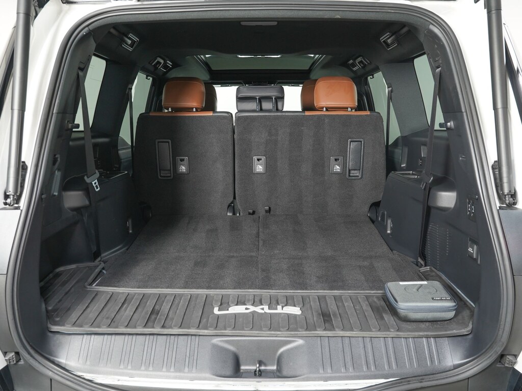 21 Speakers, 3rd row seats: split-bench, Adaptive suspension, AM/FM radio, Apple CarPlay/Android Auto, Auto High-beam Headlights, Auto tilt-away steering wheel, Cold Area Package, Driver Monitor Camera, Electronic Stability Control, Exterior Parking Camera Rear, Four wheel independent suspension, Front Center Armrest w/Storage, Front Cross Traffic Alert-Braking, Head-Up Display, Headlamp Washer, Heated & Ventilated Front Bucket Seats, Heated rear seats, Heated steering wheel, Lane Change Assist, Leather Shift Knob, Leather steering wheel, Luxury Plus Package, Memory seat, Navigation system: Drive Connect Cloud Navigation (3-year trial subscription included), Passenger door bin, Power Liftgate, Power passenger seat, Radio: Lexus Interface w/14" Touchscreen, Rear window wiper, Semi-Aniline Leather Seat Trim, Split folding rear seat, Traffic Jam Assist, Wheels: 22" x 7.5J Aluminum Alloy, Windshield Wiper De-Icer.