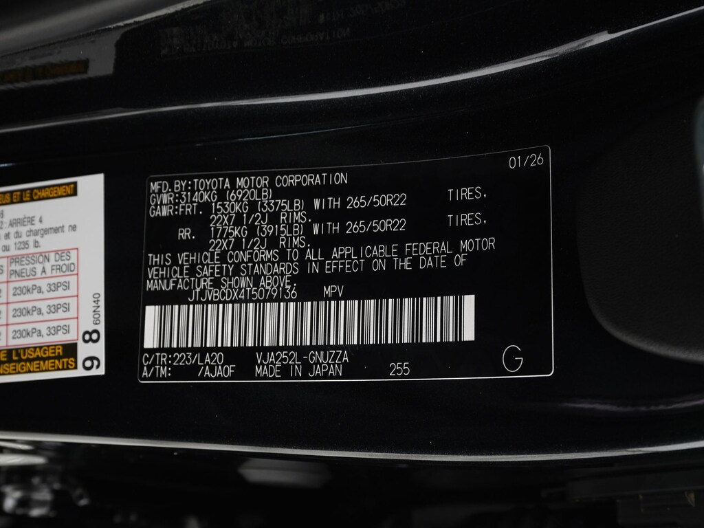 - Front tires: 265/50HR22.0