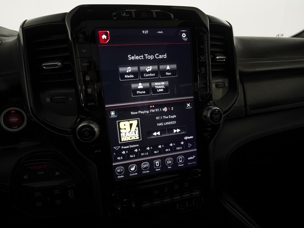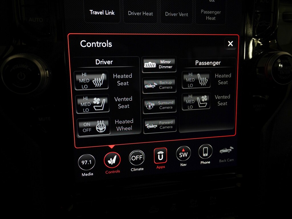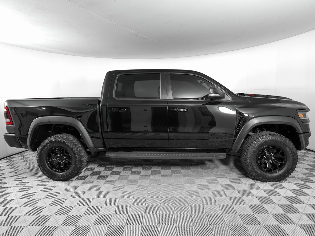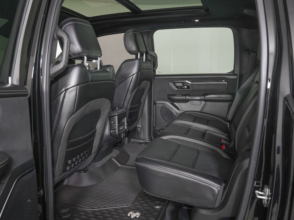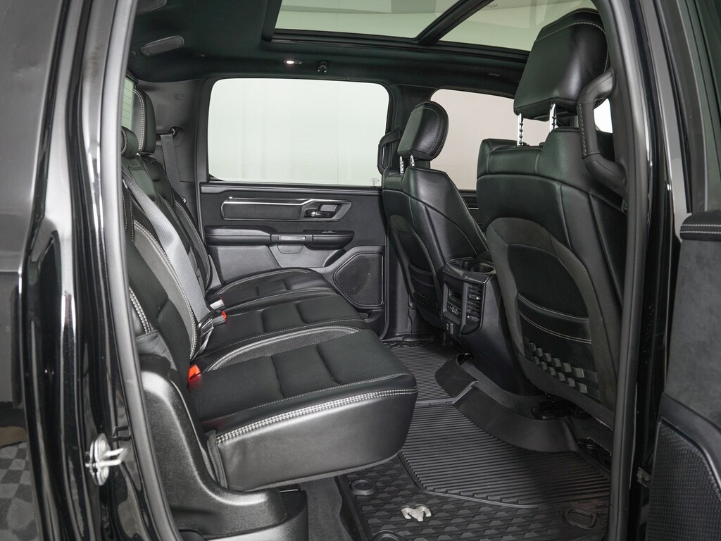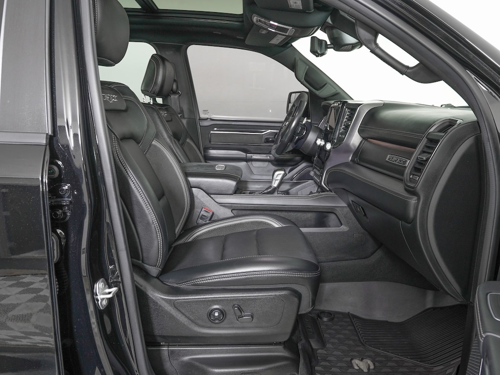 10 Speakers, 3.55 Rear Axle Ratio, 4 Way Front Headrests, Adaptive Cruise Control w/Stop & Go, Adaptive suspension, Advanced Safety Group, AM/FM radio: SiriusXM with 360L, Apple CarPlay/Android Auto, Auto High-beam Headlights, Bed Utility Group, Blind Spot & Cross Path Detection, Body Color Door Handles, Bucket Seats, Driver Seat Memory, Driver/Passenger Wrapped Assist Handles, Exterior Mirrors w/Memory, Front Door Accent Lighting, Full Length Premium Upgraded Floor Console, Heads-Up Display, Heated Front Seats, Heated Second Row Seats, Heated Steering Wheel, IP LED Ambient Light Pipe, Lane Keep Assist, Leather Shift Knob, Leather steering wheel, Leather Trimmed Bucket Seats, Leather/Suede Flat-Bottom Steering Wheel, LED CHMSL Lamp, Luxury Front Door Trim Panel, MOPAR 4 Adjustable Cargo Tie-Down Hooks, MOPAR Deployable Bed Step, MOPAR Off-Road Style Running Boards, MOPAR Spray In Bedliner, Navigation System, ParkSense Front/Rear Park Assist w/Stop, ParkView Rear Back-Up Camera, Pedestrian Emergency Braking, Pick-Up Box Lighting, Power 4-Way Driver Lumbar Adjust, Power 4-Way Passenger Lumbar Adjust, Power 8-Way Driver & Passenger Seats, Power Adjustable Pedals w/Memory, Premium Wrapped IP Bezel, Quick Order Package 29Y, Radio data system, Radio: Uconnect 12 w/Navigation, Radio/Driver Seat/Mirrors/Pedals Memory, Rain Sensitive Windshield Wipers, Rear 60/40 Folding Split Recline Seat, Rear Door Accent Lighting, Rear Underseat Compartment Storage, Rear Window Defroster, Rearview Autodim Digital Display Mirror, Remote Proximity Keyless Entry, Remote Start System, Remote Tailgate Release, Sun Visors w/Illuminated Vanity Mirrors, Surround View Camera System, Technology Group, Trailer Brake Control, TRX Level 2 Equipment Group, Universal Garage Door Opener, Ventilated Front Seats, Ventilated Rear Seats, Wheels: 18" x 9" Black Paint/Polish Aluminum, Wireless Charging Pad.