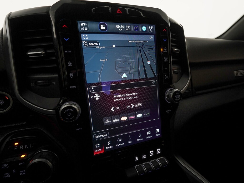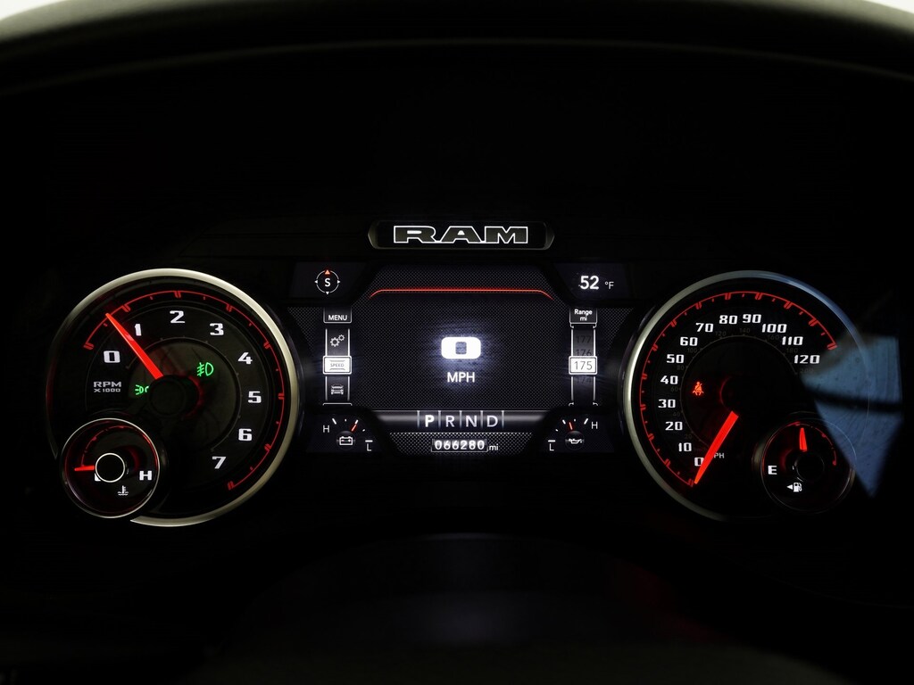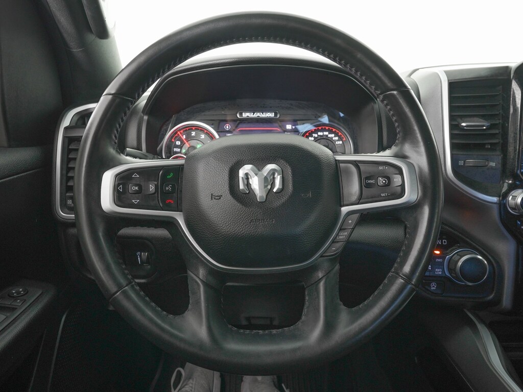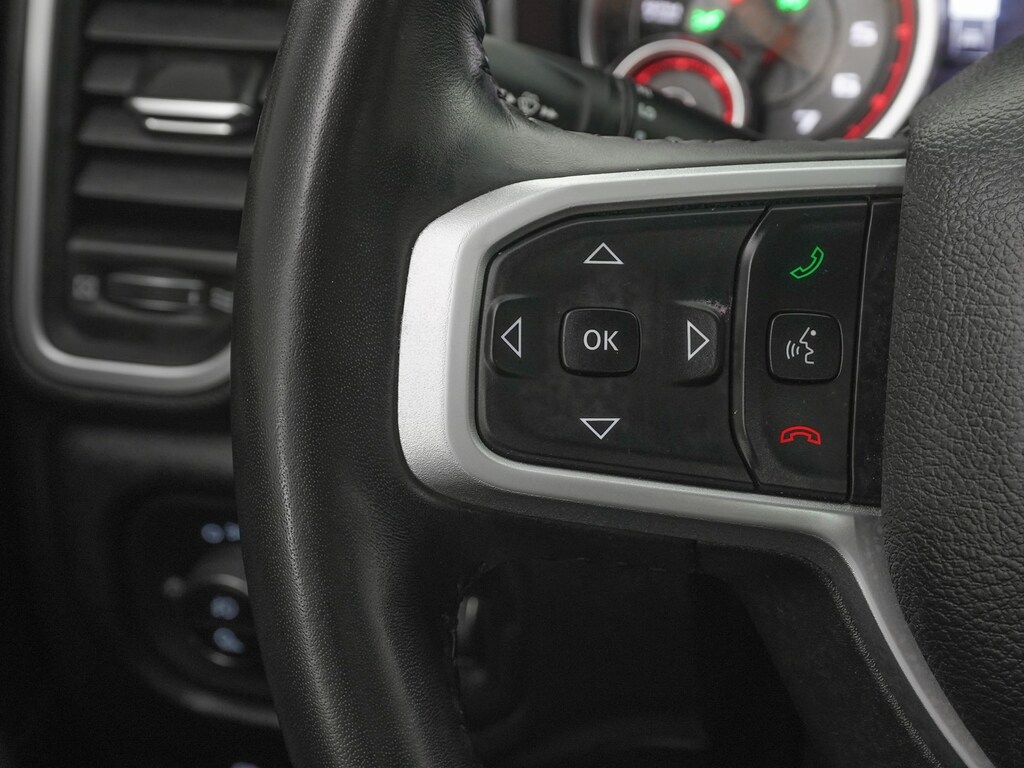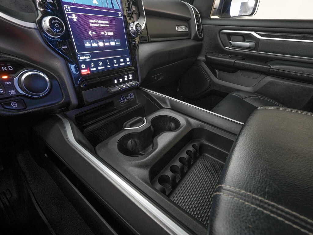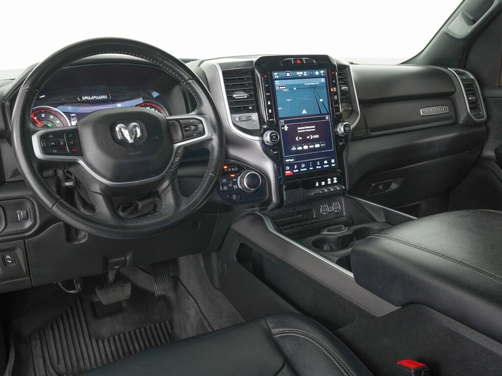 115V Auxiliary Power Outlet, 115V Auxiliary Rear Power Outlet, 12" Touchscreen Display, 2nd Row In Floor Storage Bins, 3 Rear Seat Head Restraints, 4 Way Front Headrests, 400W Inverter, 4G LTE Wi-Fi Hot Spot, 6 Speakers, 8.4" Touchscreen Display, 9 Amplified Speakers w/Subwoofer, Air Conditioning ATC w/Dual Zone Control, All R1 High Radios, All Radio Equipped Vehicles, AM/FM radio, Anti-Spin Differential Rear Axle, Apple CarPlay, Auto-Dimming Exterior Driver Mirror, Auto-Dimming Rear-View Mirror, Big Horn Badge, Big Horn Level B Equipment Group (DISC), Black Exterior Truck Badging, Black Headlamp Bezels, Black Interior Accents, Black Premium Power Mirrors (GUL), Bluetooth Handsfree Phone & Audio, Body Color Front Bumper, Body Color Rear Bumper w/Step Pads, Bucket Seats, Class IV Receiver Hitch, Cluster 7.0" TFT Color Display, Connected Travel & Traffic Services, Connectivity - US/Canada, Delete LED Lamp - Floor Console Bin, Deluxe Cloth Bucket Seats, Disassociated Touchscreen Display, Dual Exhaust w/Black Tips, Electronic Stability Control, Exterior Mirrors Courtesy Lamps, Exterior Mirrors w/Supplemental Signals, Foam Bottle Insert (Door Trim Panel), For Details, Visit DriveUconnect.com, For More Info, Call 800-643-2112, Front Seat Back Map Pockets, Full Length Floor Console, Global Telematics Box Module (TBM), Glove Box Lamp, Google Android Auto, GPS Antenna Input, GPS Navigation, HD Radio, Heated Front Seats, Heated Steering Wheel, Integrated Center Stack Radio, Integrated Voice Command w/Bluetooth, LED Footwell Lighting, Manual Adjust 4-Way Front Passenger Seat, Media Hub w/2 Charge Only USBs, MOPAR Front & Rear Rubber Floor Mats, Night Edition (DISC), ParkSense Front/Rear Park Assist w/Stop, ParkView Rear Back-Up Camera, Power 2-Way Driver Lumbar Adjust, Power 8-Way Driver Seat, Power Adjustable Pedals, Quick Order Package 27Z Big Horn, Radio data system, Radio: Uconnect 5 Nav w/12.0" Display, Rear 60/40 Folding Seat, Rear Center Armrest, Rear Dome w/On/Off Switch Lamp, Rear Power Sliding Window, Rear Underseat Compartment Storage, Rear Window Defroster, Remote Start System, Security Alarm, SiriusXM Radio Service, SiriusXM Satellite Radio, SiriusXM w/360L, Sun Visors w/Illuminated Vanity Mirrors, Universal Garage Door Opener, USB Host Flip.