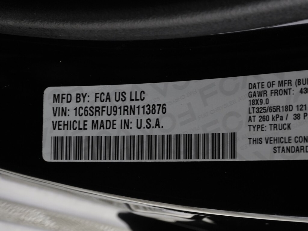 - Rear tires: 325/65RR18.0D