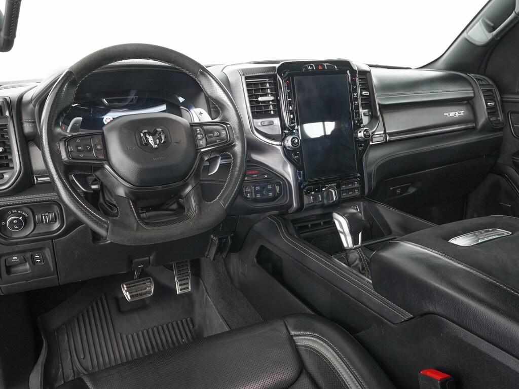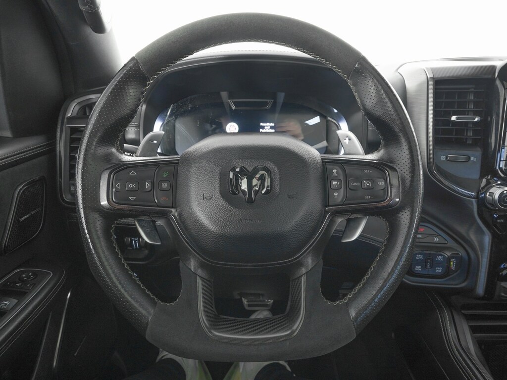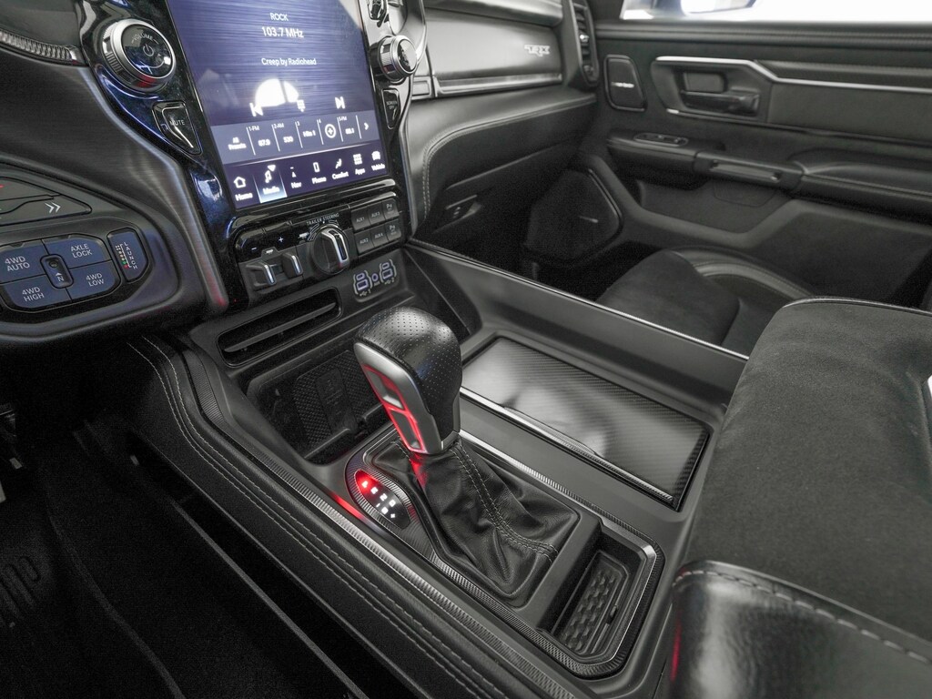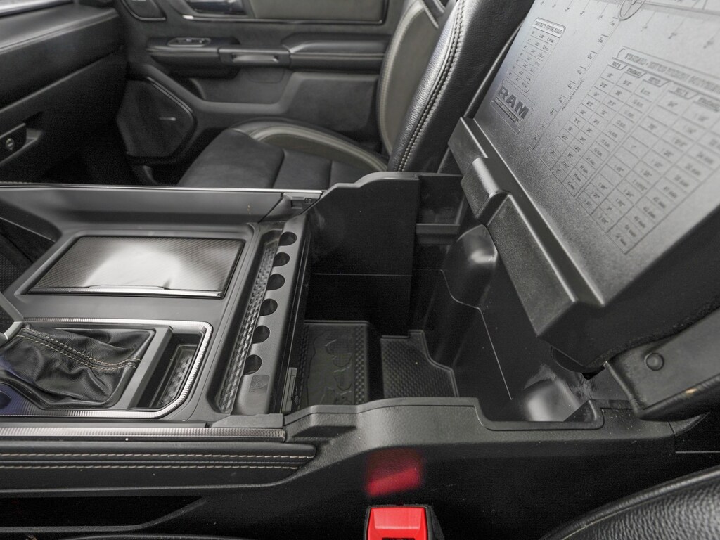 #2 Seat Foam Cushion, 10 Speakers, 4 Way Front Headrests, Adaptive Cruise Control w/Stop & Go, Adaptive suspension, Advanced Safety Group, AM/FM radio: SiriusXM with 360L, Apple CarPlay/Android Auto, Auto High-beam Headlights, Bed Utility Group, Blind Spot & Cross Path Detection, Brake assist, Bucket Seats, Dual-Pane Panoramic Sunroof, Electronic Stability Control, Exterior Mirrors Courtesy Lamps, Exterior Mirrors w/Heating Element, Exterior Mirrors w/Supplemental Signals, Front Seat Back Map Pockets, Full Length Premium Upgraded Floor Console, harman/kardon 19 Speaker Premium Sound, Heads-Up Display, Heated Front Seats, Heated Steering Wheel, Lane Keep Assist, Leather Shift Knob, Leather steering wheel, Leather Trimmed Bucket Seats, LED CHMSL Lamp, MOPAR Deployable Bed Step, MOPAR Off-Road Style Running Boards, MOPAR Spray In Bedliner, Navigation System, ParkSense Front/Rear Park Assist w/Stop, ParkView Rear Back-Up Camera, Pick-Up Box Lighting, Power 4-Way Driver Lumbar Adjust, Power 4-Way Passenger Lumbar Adjust, Quick Order Package 29Y TRX, Radio data system, Radio: Uconnect 5 Nav w/12.0" Display, Rain Sensitive Windshield Wipers, Rear 60/40 Folding Seat, Sun Visors w/Illuminated Vanity Mirrors, Surround View Camera System, Tachometer, TRX Carbon Fiber Package, TRX Level 2 Equipment Group, Ventilated Front Seats, Ventilated Rear Seats, Voltmeter, Wheels: 18" x 9" Bead-Lock Aluminum, Wireless Charging Pad.